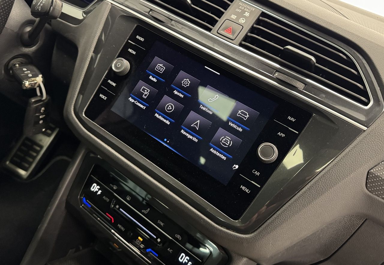 Volkswagen Tiguan R-Line 2.0 TDI 150CV DSG | 2024 | 39.000 km Nacional – Único propietario – IVA deducible – Garantía total 1 año ¡DESDE 399€/MES SIN ENTRADA! Autopuente Ocasión, concesionario oficial Renault con más de 30 años de experiencia, te presenta este Volkswagen Tiguan R-Line 150CV DSG, una unidad nacional, de único propietario, con IVA deducible y en impecable estado de carrocería, interior y mecánica. Un SUV moderno, deportivo y muy equipado, ideal para el día a día y viajes. Entregamos tu nuevo vehículo a domicilio, aceptamos tu coche como parte de pago y ofrecemos financiación rápida y flexible. ¡Somos el único concesionario con 5 estrellas reales en Google! Tecnología y conectividad: Dispone de pantalla multimedia táctil con Apple CarPlay y Android Auto, cuadro digital Virtual Cockpit configurable, cámara de asistencia trasera y sensores de aparcamiento delanteros y traseros. Incorpora iluminación ambiental, modos de conducción, llamada de emergencia SOS y reconocimiento de señales de tráfico, ofreciendo una experiencia tecnológica avanzada. Seguridad y asistencia: Equipa asistente de mantenimiento de carril, control de crucero adaptativo (ACC), frenada de emergencia, detector de ángulo muerto y sistema de detección de cansancio. Incluye freno de mano eléctrico con función AutoHold para una conducción más segura y cómoda. Confort y diseño: Acabado R-Line con estética deportiva, asientos deportivos, volante multifuncional con levas, climatizador trizona y techo panorámico. Dispone de lunas tintadas, llantas deportivas y espejos plegables y regulables eléctricamente, combinando diseño, confort y funcionalidad. Estado del vehículo: Se entrega con la revisión completa recién realizada, mantenimiento al día y verificado minuciosamente por nuestro equipo técnico. Precio: 32.990€ Precio sujeto a financiación 34.990€ Precio al contado +600€ Cambio de nombre y preentrega Por qué elegir este Volkswagen Tiguan: Un SUV moderno con acabado R-Line, motor eficiente de 150CV, gran equipamiento tecnológico y un equilibrio perfecto entre deportividad, confort y versatilidad. ¡Solicita más información o ven a probarlo sin compromiso! Este anuncio no es vinculante, puede contener errores y se muestra a título informativo y no contractual.